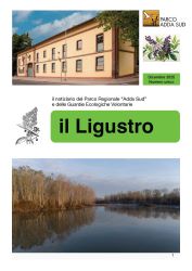 Sommario: pag. 2 - Le Gev, il Parco e il nostro territorio; pag. 3 - Parchi regionali, protezione della natura e…; pag. 4 - Vigilanza; pag. 5 - Protezione Civile; pag. 6 - Cronaca di una giornata di vigilanza; pag. 7 - Io , Voi, Noi tutti GEV del Parco Adda Sud; pag. 8 - L'Oscar dei consumatori al Parco Adda Sud; pag. 9 - Educazione Ambientale: Amiamo e risparmiamo l'ambiente; pag. 10 - Orienteering; pag. 11 - Corso sulle piante aromatiche; pag. 12 - Atlante degli uccelli del PAS; pag. 13 - Dalle querce figlie del fiume alle antiche torbiere; pag. 14 - Il Ligustro; pag. 15 - Le cicogne di Castiglione.